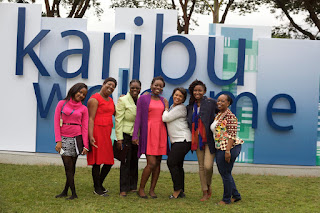 Au siège des Nations Unies à Nairobi .De gauche à droite, Nehema, kenyane, Sandra,zambienne, Joséphine, burkinabée, moi en rose, LaSean, américaine, Bonolo, sud-africaine, et Bella, tanzanienne |