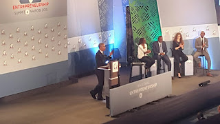 Pourtant c’est à 10 heures que B.O fait son entrée. Il arrive avec Uhuru Kenyatta, le président kenyan. L’assistance est en délire, certains ne savaient pas qu’il viendrait. Moi-même je suis électrisée.Un charisme de fou. Un charme qui opère sur toute l’assemblée. De là où je suis, dans un balcon à quelques mètres, j’ai une vue imprenable, que je savoure avec les journalistes, qui ont presqu’oublié pourquoi ils sont là. C’est à qui prendra le meilleur selfie avec Obama en arrière-plan. Dans la salle, c’est un panel de discussion. 3 jeunes entrepreneurs face à B.O et Uhuru. En tout 45 minutes. Passées trop vite. B.O et Uhuru s’en vont dans une standing ovation.  Il faudra attendre jusque midi pour avoir la liberté de mouvement. J’en profite pour aller déjeuner sous la tente où est installée un énorme buffet pour les délégués. Depuis hier, nous y allons avec quelques membres de notre équipe pour y prendre une brève pause, manger et discuter avant de retourner au travail.